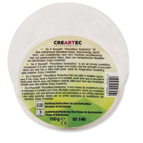 La Pâte à modeler „Porcellana fantastica" ARTIDEE® se caractérise par son aspect blanc et élégant. La Pâte facile à modeler permet de multiples utilisations et ceci à un rapport qualité / prix remarquable.