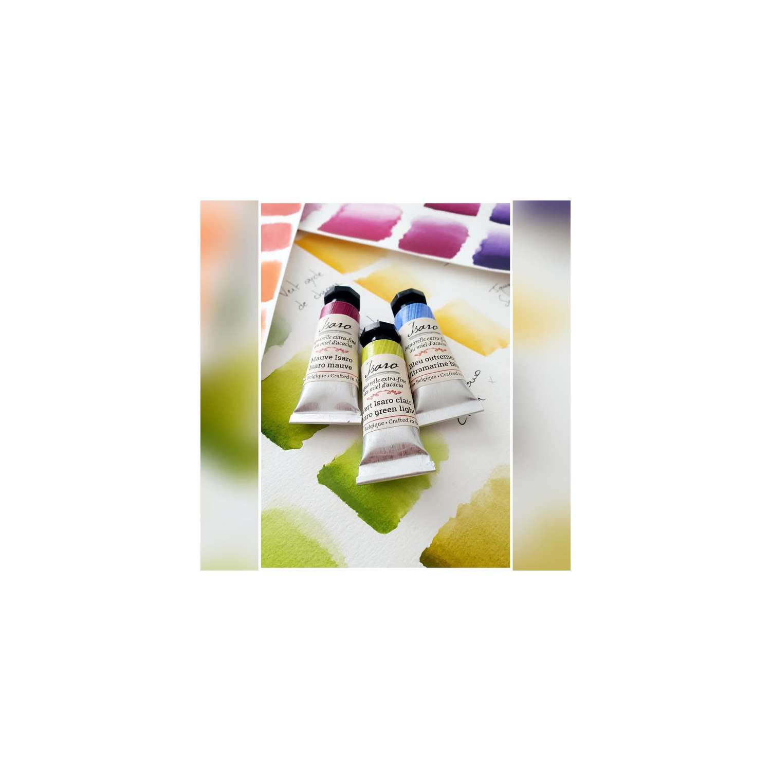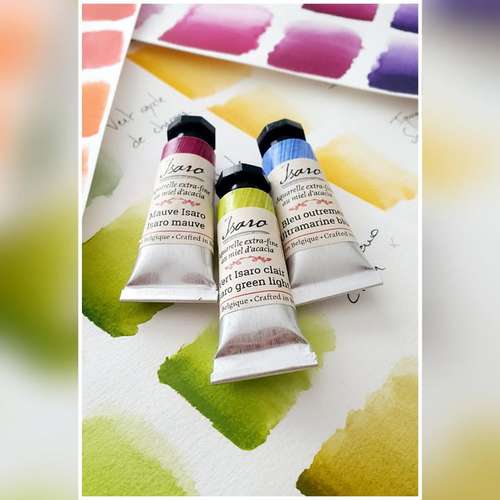 Découvrez les peintures aquarelles extra-fines Isaro. Ces aquarelles artisanales se distinguent par leur puissance colorante et leur luminosité. Grâce à une sélection minutieuse de pigments, ces aquarelles offrent une palette riche, où chaque teinte conserve toute son intensité et sa saturation, même en couches légères.