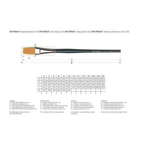 Le pinceau à remplir DA VINCI NOVA, série 1370 est un pinceau universel, pour les détails, les décorateurs. Il s´utilise pour l´huile, l´acrylique et l´aquarelle.