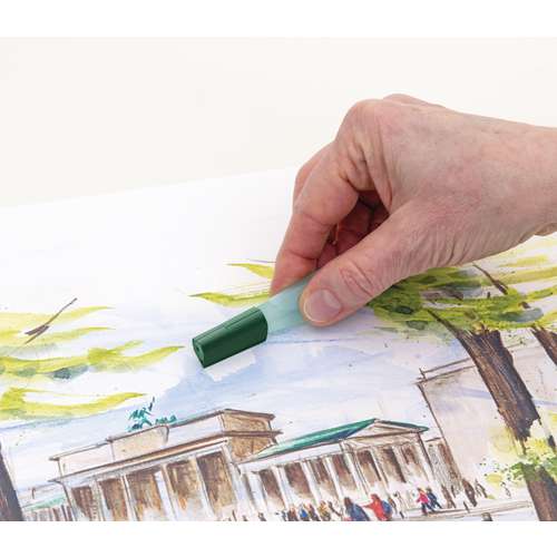 Le Pinceau réservoir FABER-CASTELL Art & Graphic se compose de 3 éléments, convainc par sa taille idéale et un fonctionnement facile. Grâce à sa forme compacte, il est le compagnon idéal de voyage. Les rainures intégrées et le biseau sur le côté du capuchon permettent aussi de l´utiliser pour gratter. Les poils en fibres synthétiques de grande qualité sont souples et doux, et retiennent beaucoup de couleur. La pointe reste stable même après de nombreuses utilisations. La forme ergonomique du manche permet de travailler longtemps sans fatiguer la main.