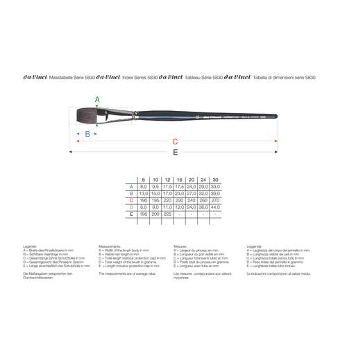 Version à pointe plate du Cosmotop-Mix B, série 5530 de da Vinci, idéal pour l´aquarelle et la peinture sur soie.