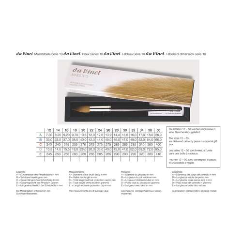 Particularié de la taille 50 : ce pinceau aquarelle Maestro DA VINCI est le pinceau le plus précieux fabriqué par la maison da Vinci. Ses particularités :