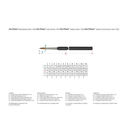 Le pinceau de poche Da Vinci, série 1503 est idéal pour vos voyages artistiques. Vous pouvez dévisser la pointe et la placer dans le manche pour mettre le pinceau en poche et protéger parfaitement les poils de martre.