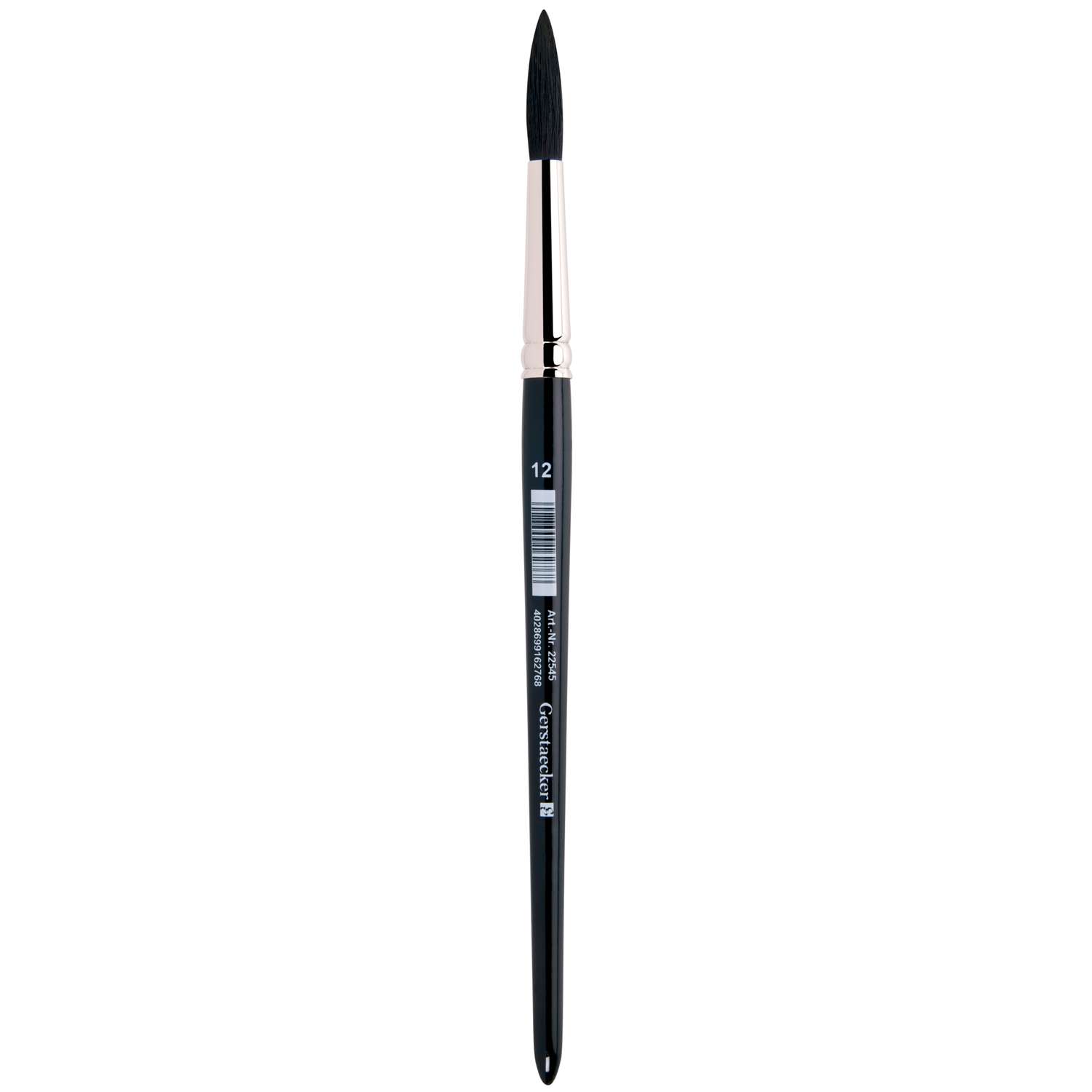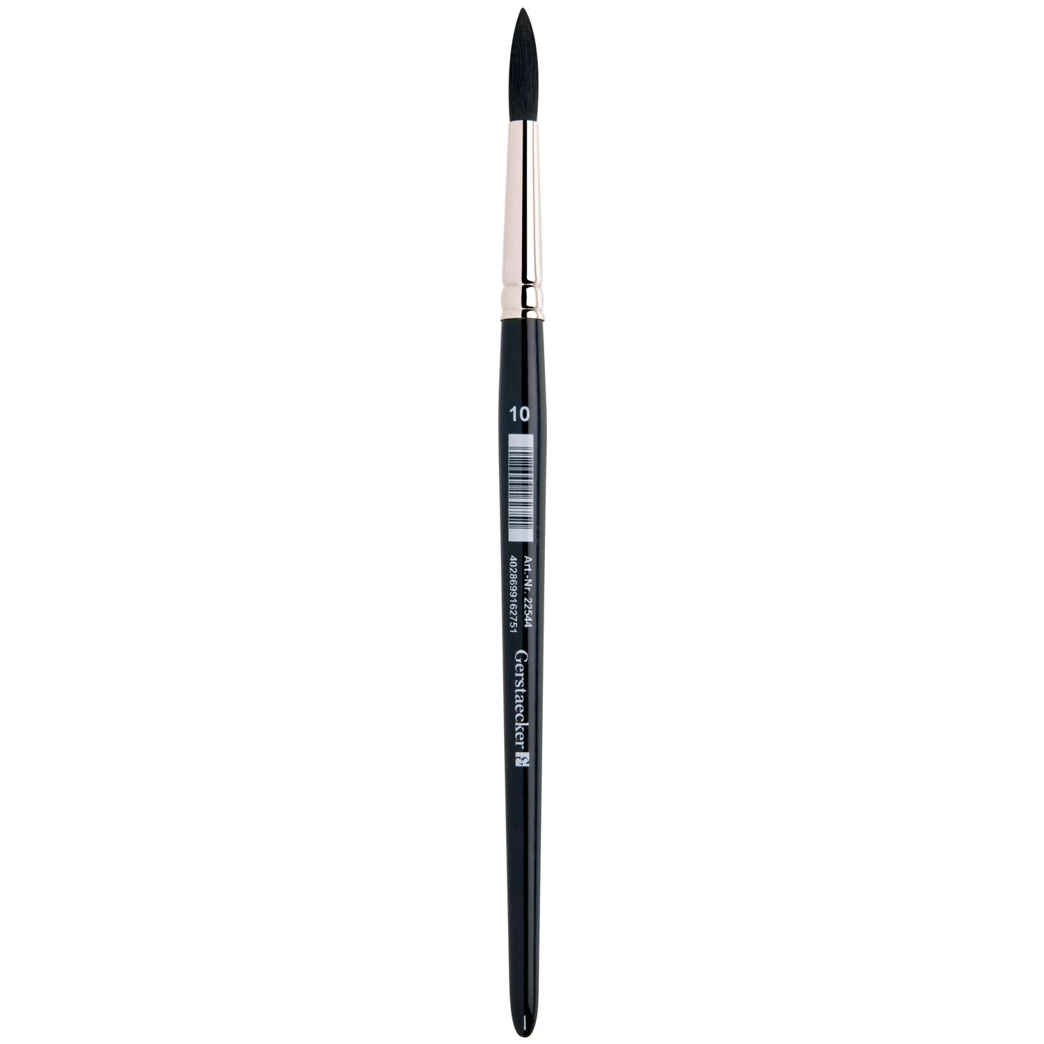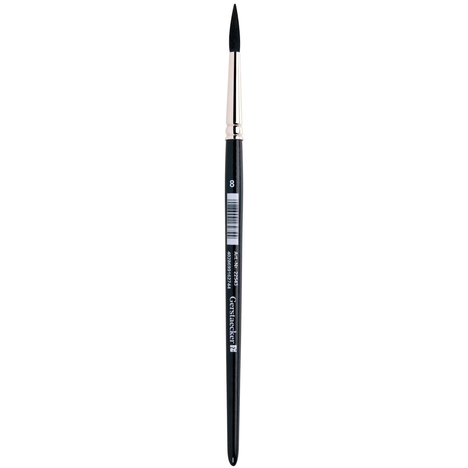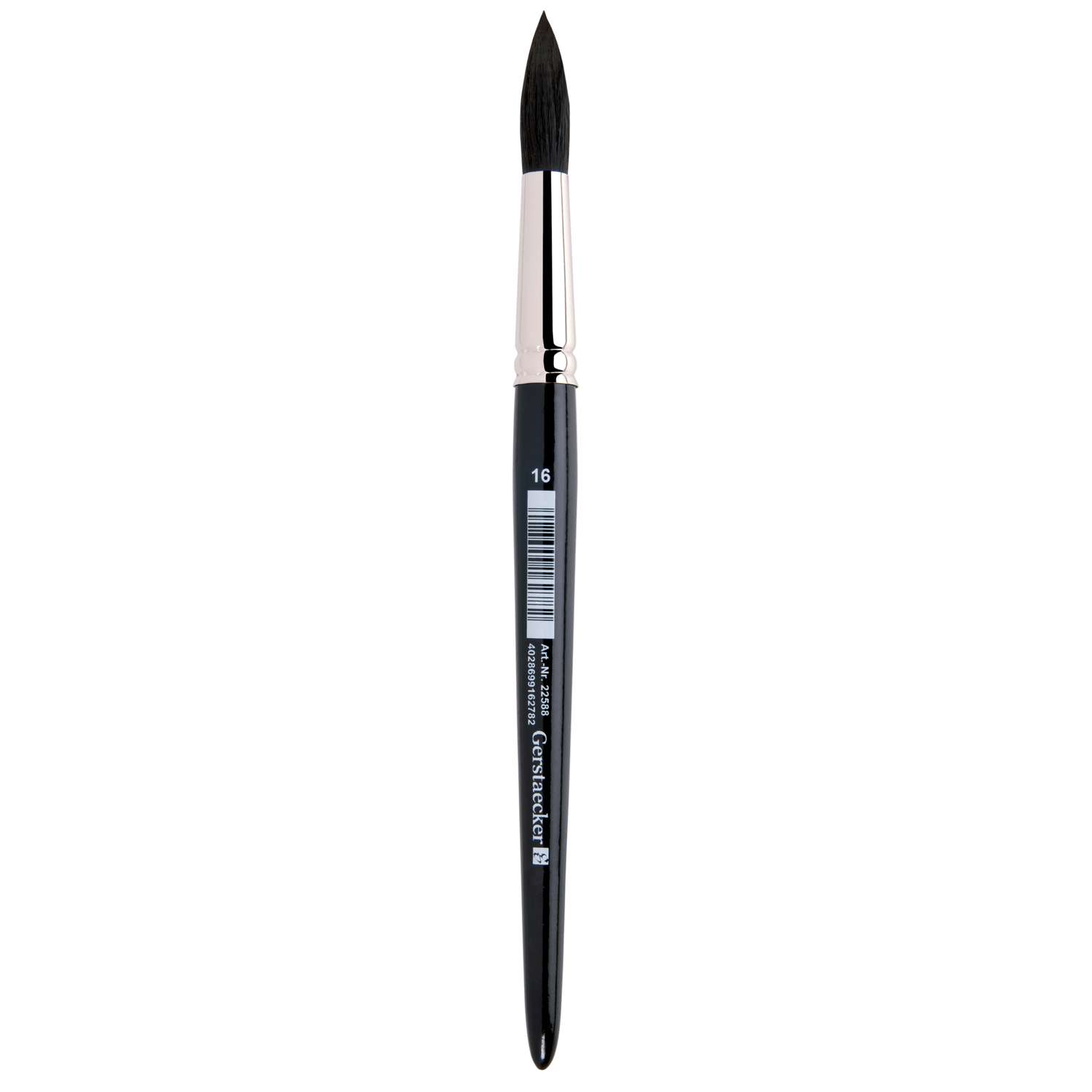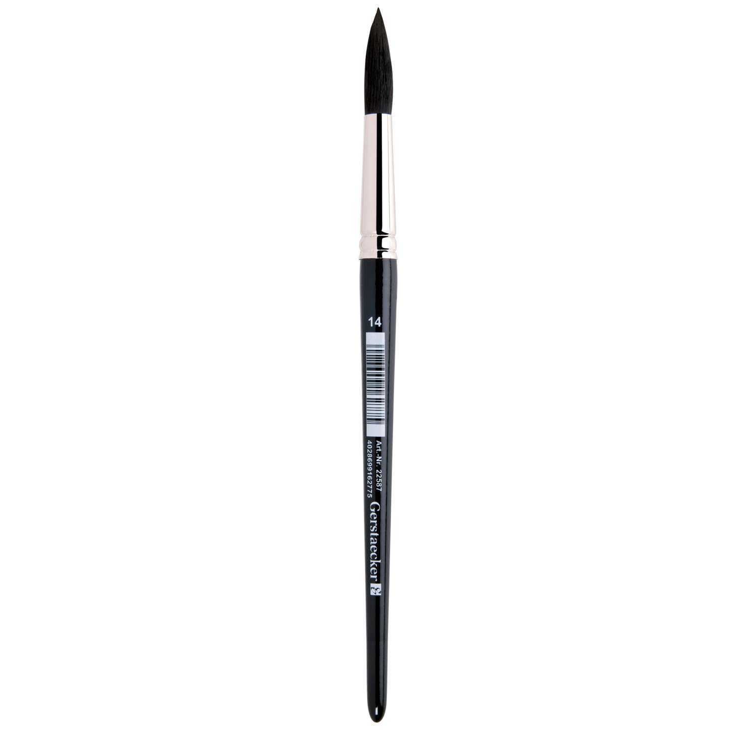 Pinceau en petit-gris GERSTAECKER pour l´aquarelle et la tempéra convenant parfaitement à une utilisation en milieu scolaire. Virole en fer, manche laqué noir satiné.