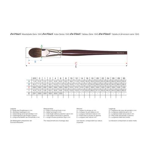 Pinceau huile DA VINCI BLACK SABLE série 1845