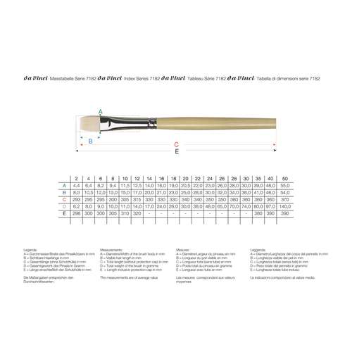 Le Pinceau plat DA VINCI TOP-ACRYL, série 7182 est une brosse aux fibres synthétiques pour l´huile et l´acrylique couvrantes ainsi que les peintures pâteuses.