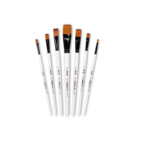 Pinceau pointe plate Darwi for You, poils synthétiques vegan, manche blanc laqué. Idéal pour aplats, contours précis et peinture acrylique.