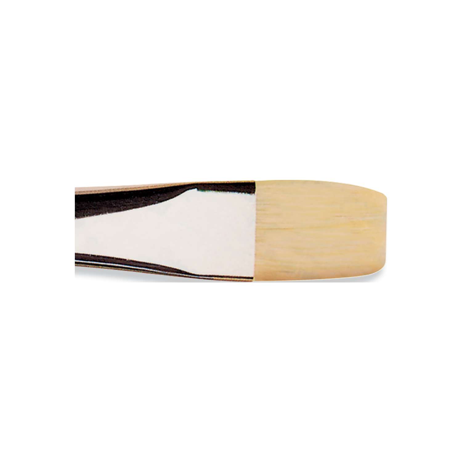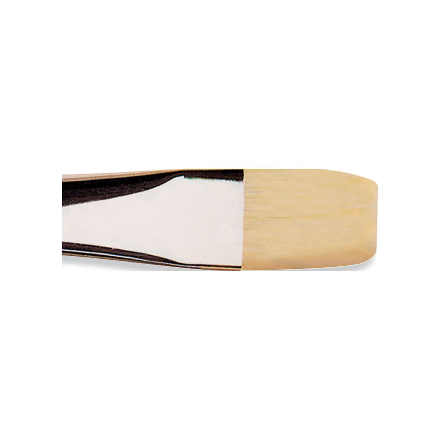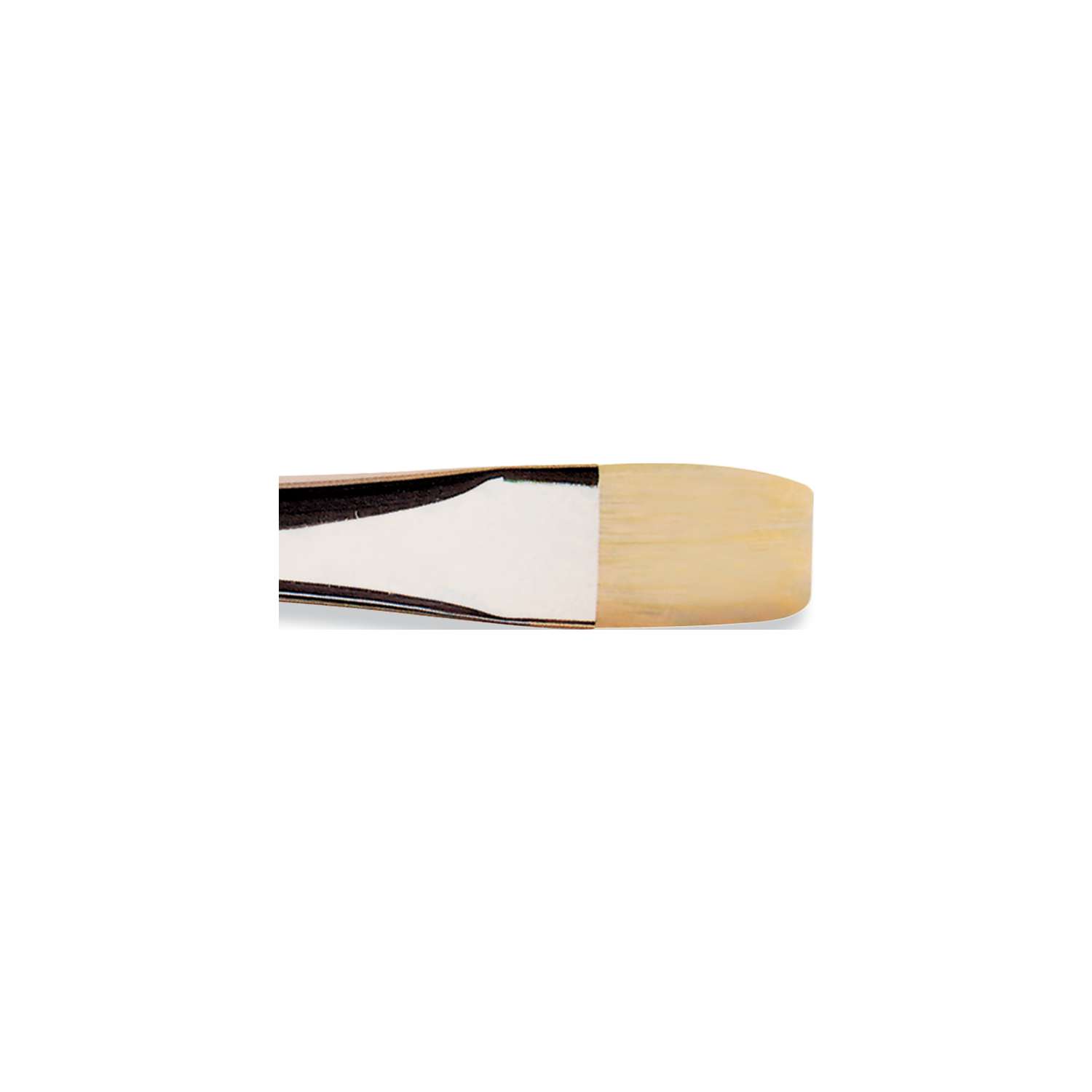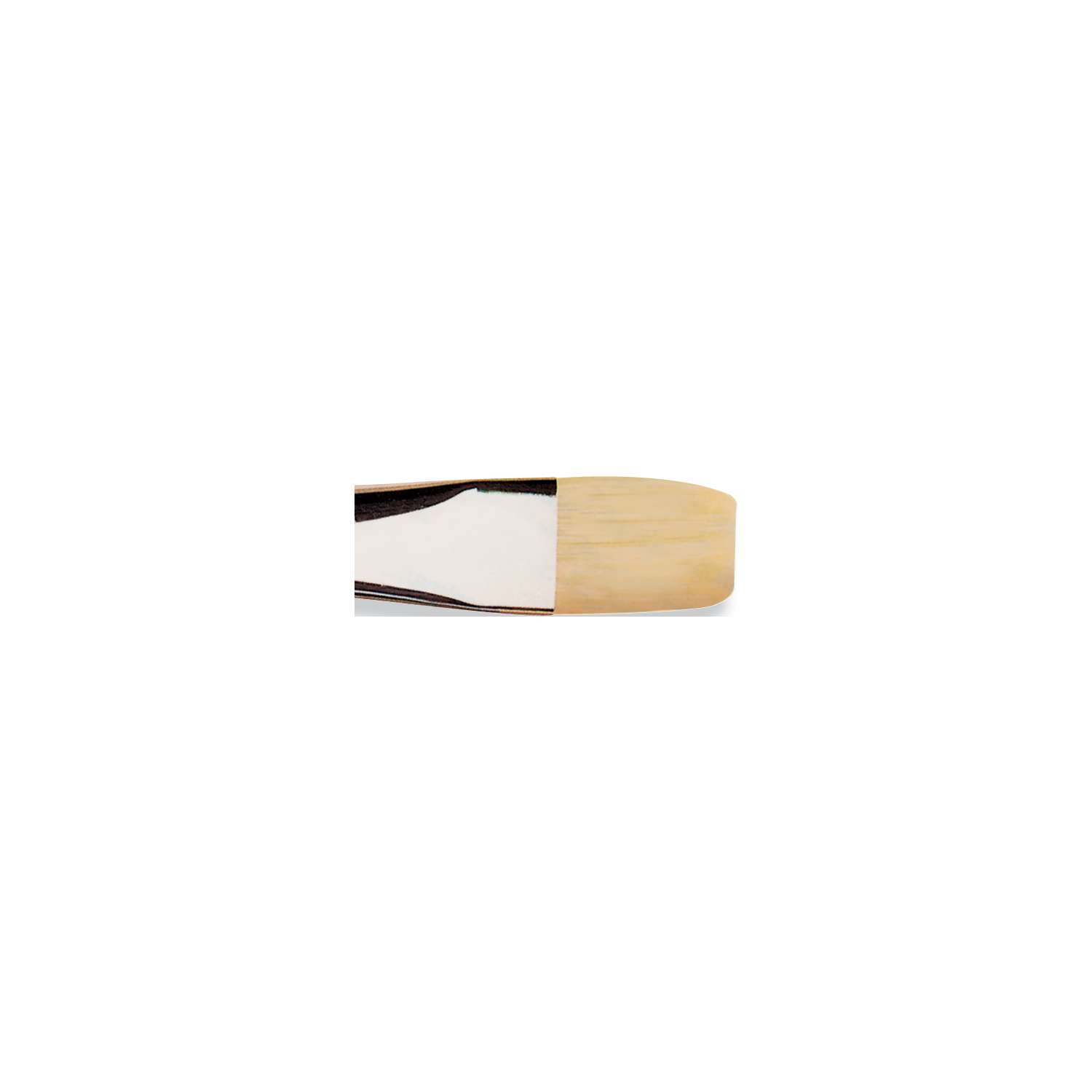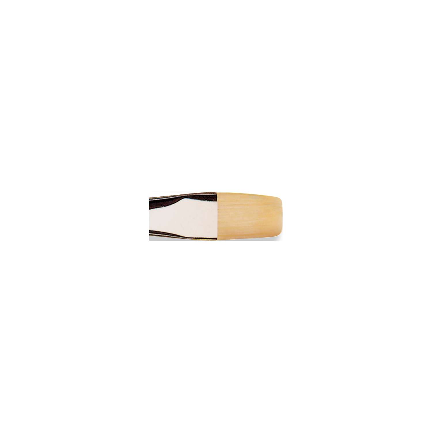 Pinceau pointe plate 359 : Ce pinceau Raphaël a une pointe plate en soies spéciales liées sur cambre. Virole longue en cuivre nickelé. Manche long verni incolore.