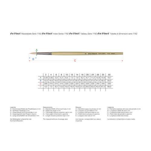 Pinceau rond DA VINCI TOP-ACRYL, série 7782, manche long - les caractéristiques