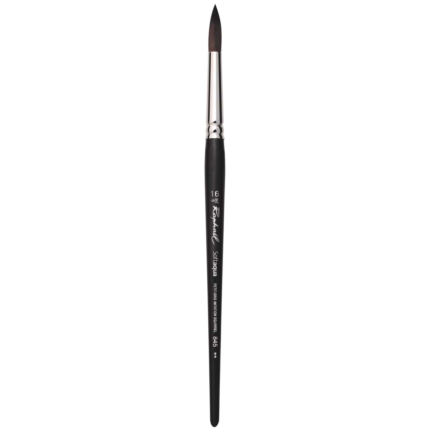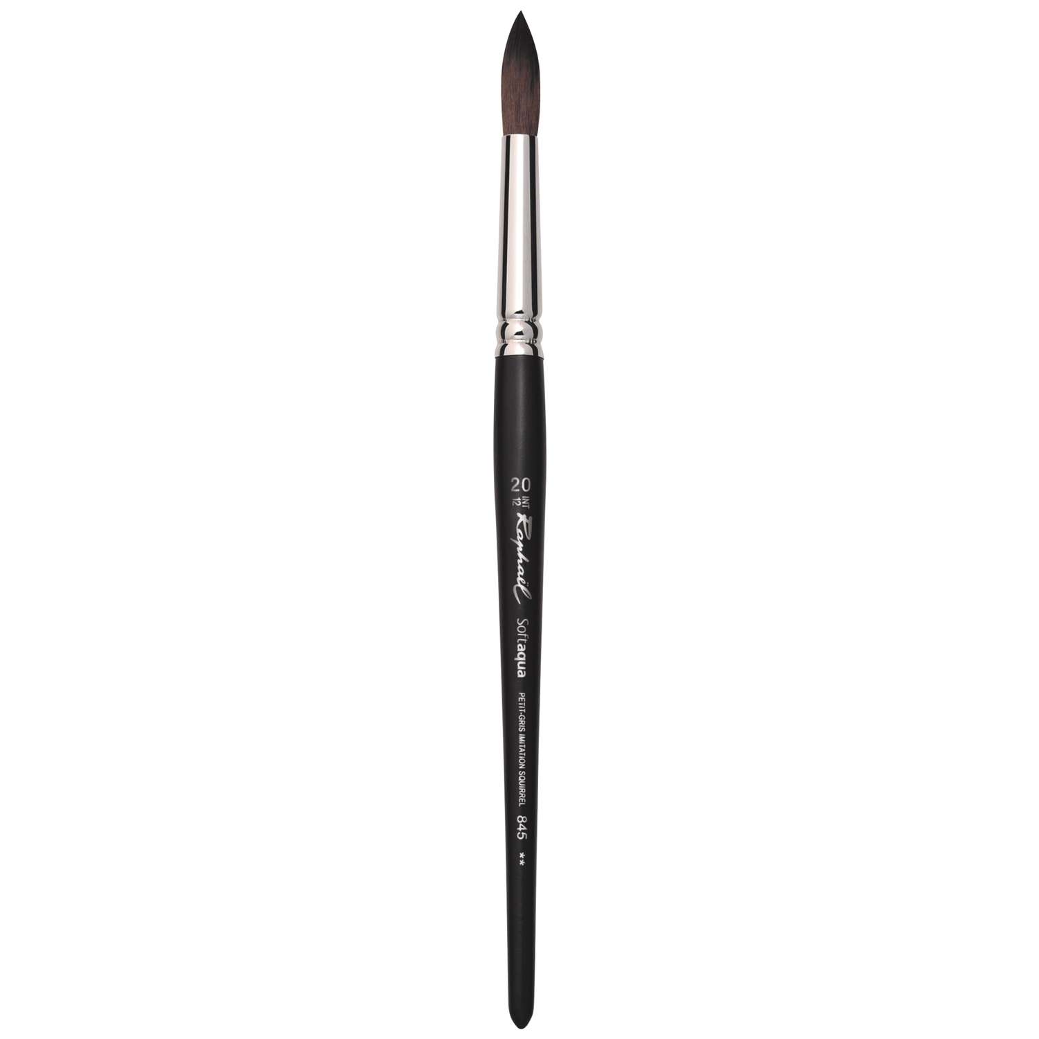 Une gamme idéale pour l’aquarelle ! Le pinceau Raphaël pointe ronde Softaqua, série 845 dispose d'une pointe en fibres synthétiques spéciales et un manche vernis noir.