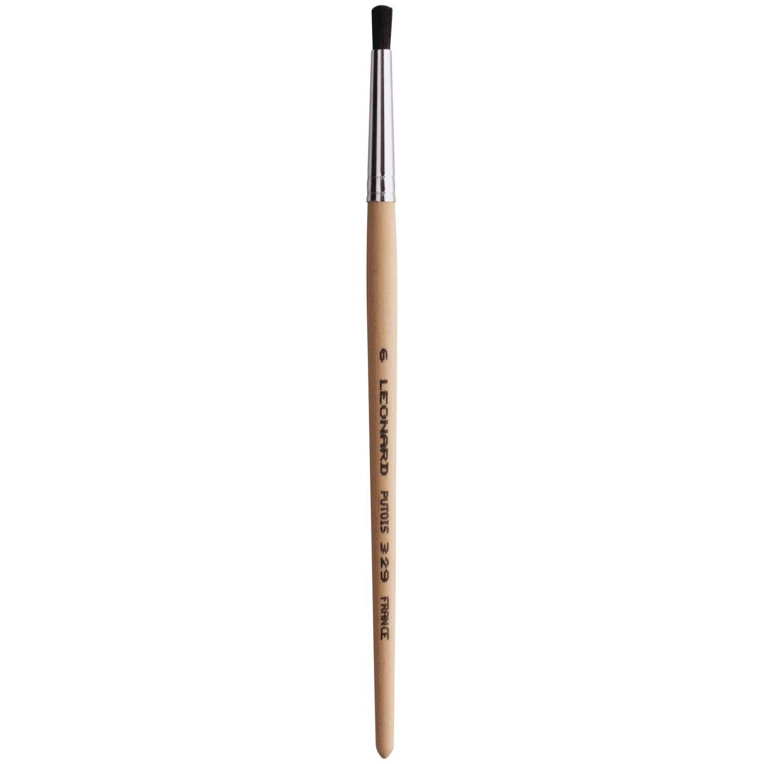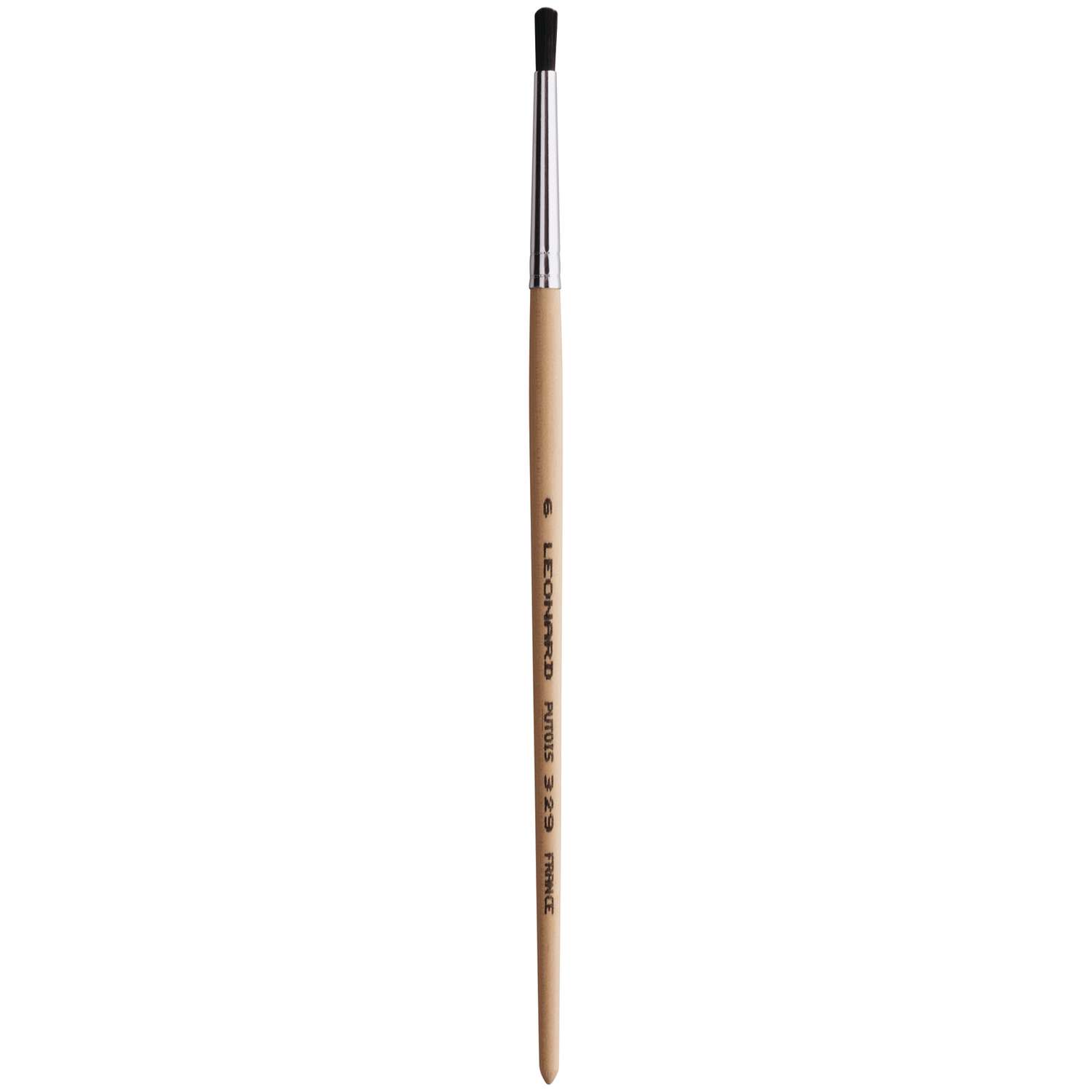 Pinceau rondin putois : Pointe ronde en poils de putois. Virole aluminium. Manche court brut. Idéal pour le petit cailloutis dans la réalisation de faux-marbre.