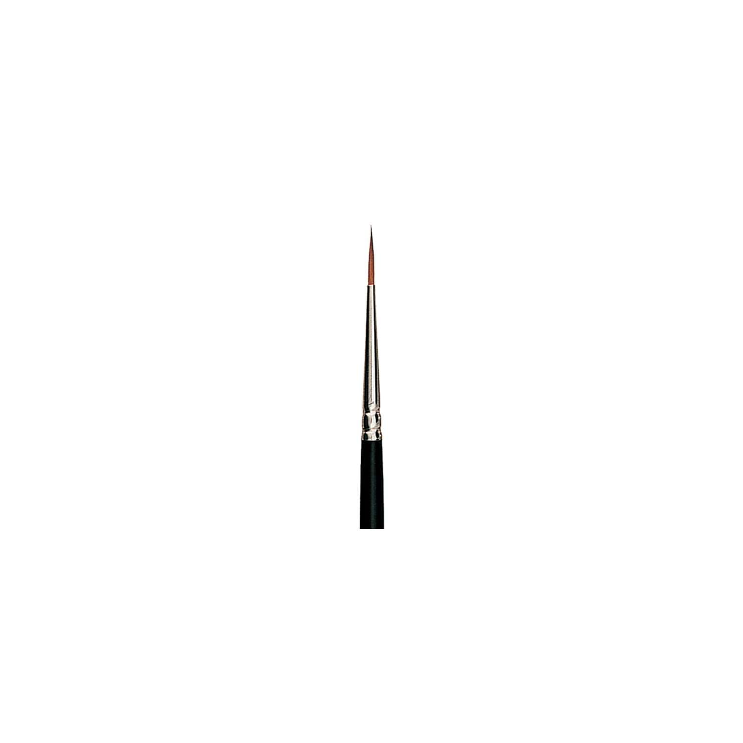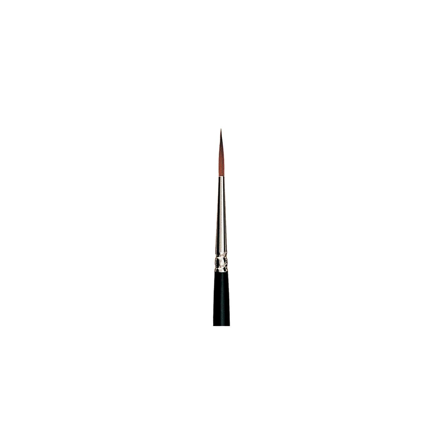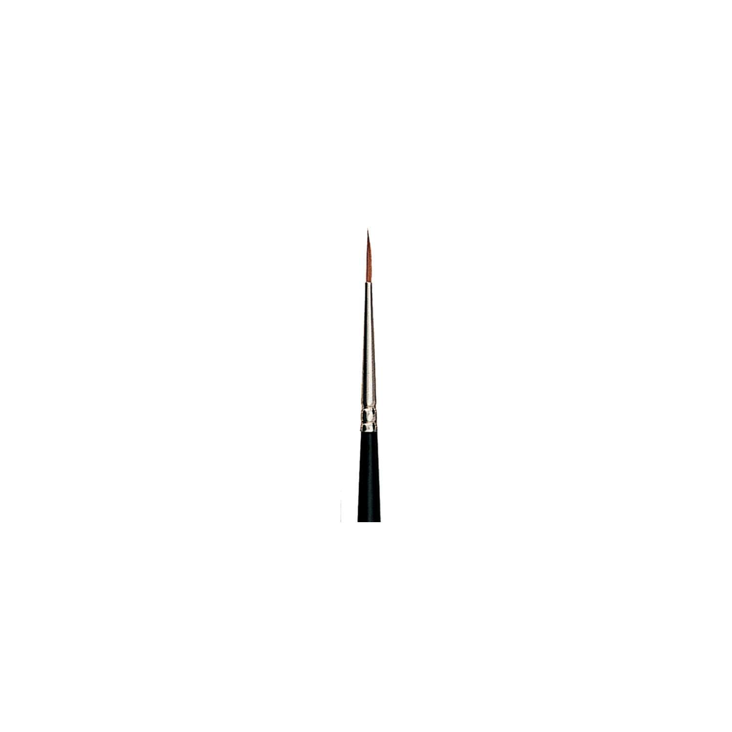 Pointe ronde, longue et fine en poils de martre Kolinsky. Virole en laiton nickelé. Manche court laqué noir.
