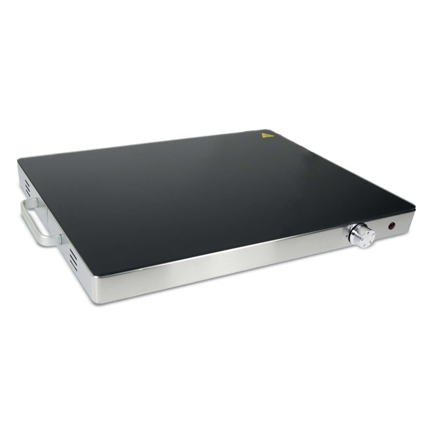 Les poignées Cool-Touch en aluminium assurent une manipulation sûre et confortable. La surface de chauffe en verre trempé est particulièrement robuste et peut supporter jusqu’à 25 kg. Le cadre est en acier inoxydable brossé 430, et le tube chauffant en acier inoxydable 201. Un dispositif de protection contre la surchauffe limite la température maximale de la surface en verre à 230 °C pour garantir la sécurité.