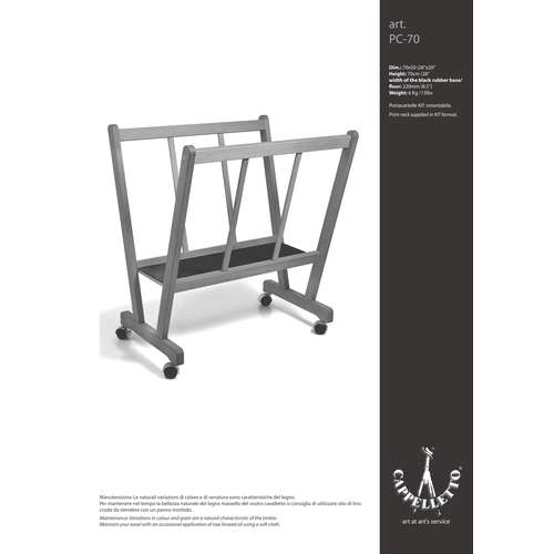 Le porte-carton Cappelletto à roulettes, en hêtre huilé, est idéal pour exposer, classer, ranger des toiles, gravures ou dessins.
