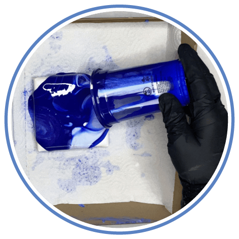 2. Prenez un châssis en main et posez sa surface sur le gobelet plein. Retournez ensuite rapidement les deux en même temps et posez-les sur la surface de travail.