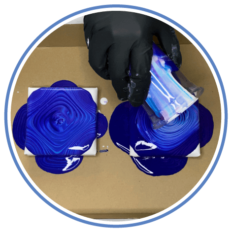 3. Versez maintenant le contenu du gobelet lentement et avec un mouvement circulaire au centre de la toile.