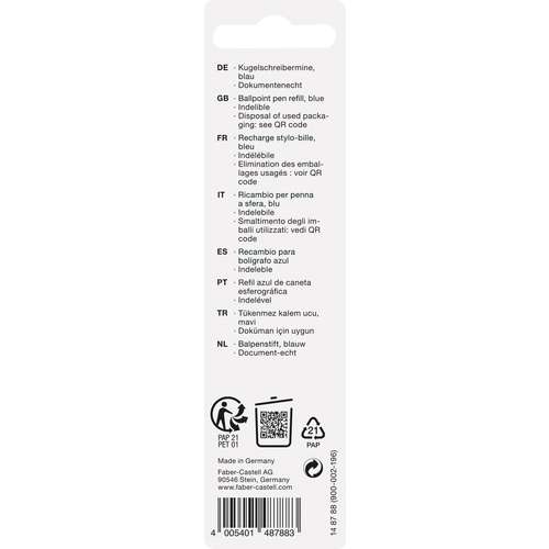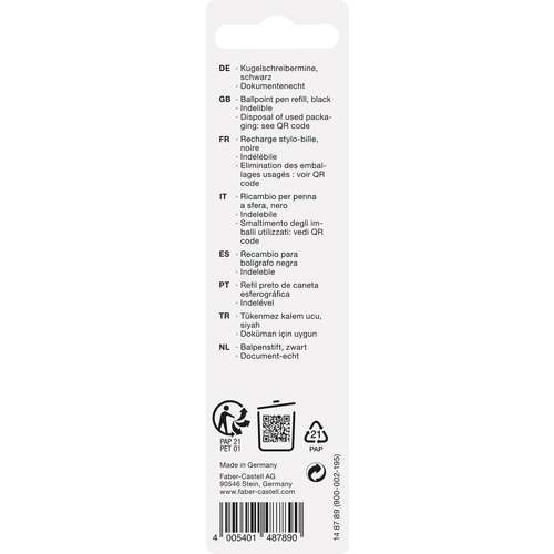 Découvrez la recharge stylo-bille Faber-Castell, idéale pour une écriture fluide et durable, compatible avec plusieurs modèles.