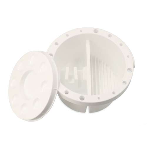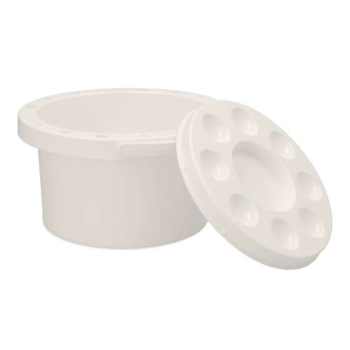 Ce récipient à pinceaux est à la fois pratique et polyvalent. Il se compose d´un plastique très solide et résistant aux solvants. Grâce à sa configuration ingénieuse en 3 parties, vous pourrez accrocher vos pinceaux et assurer leur parfaite stabilité pendant et après votre réalisation tout en laissant la pointe tremper dans le réservoir d´eau. Le fond d´une des parties creuses est jalonné de rainures qui faciliteront le nettoyage de la pointe du pinceau. Diamètre : 17 cm, hauteur: 8,5 cm.