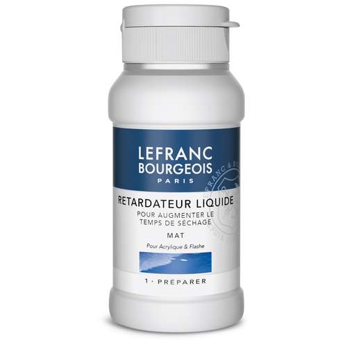 Le Retardateur liquide LEFRANC & BOURGEOIS se mélange aux couleurs acryliques et couleurs vinyliques (maximum 20%) pour augmenter le temps de séchage de la couleur.