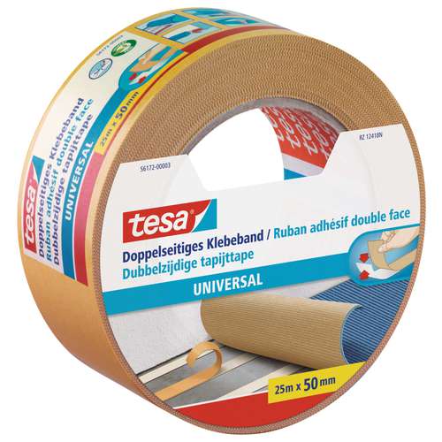 Ruban adhésif double face universel tesa® pour des collages permanents. Le ruban s´utilise pour le bricolage, la décoration et même pour coller et fixer des tapis. De largeur de 50 mm, le pouvoir collant est très puissant mais se déchire facilemnt à la main. Disponible en rouleau de 50 m de longueur.