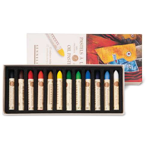 SENNELIER propose plusieurs coffrets cartonnés de pastels à l’huile aux pigments d´excellente qualité. Le nouveau design de Sennelier évoque le Cubisme, en hommage au génial instigateur de cette gamme: Pablo Picasso. Ces pastels de haute qualité se laissent travailler sur tous les supports. Diamètre : 10 mm, longueur : 65 mm. Prix par coffret.