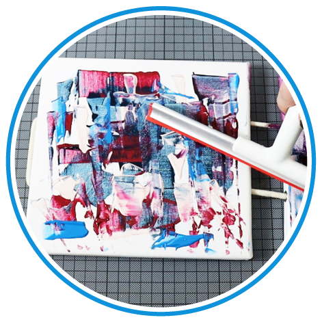 Si vous êtes un fan des effets de spatule, vous pouvez également utiliser la raclette à cet effet ! Pour ce faire, appliquez la peinture acrylique par portions sur la lèvre en caoutchouc et dessinez un motif sur la toile.