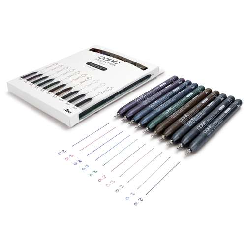 Grâce à leur pointe montée dans un embout métallique, les feutres offrent une excellente stabilité et une grande durabilité, même en cas d’utilisation intensive. Le set de 10 feutres Multiliner Copic est donc idéal pour dessiner des contours, des détails fins, des textures ou encore des lettres manuscrites.