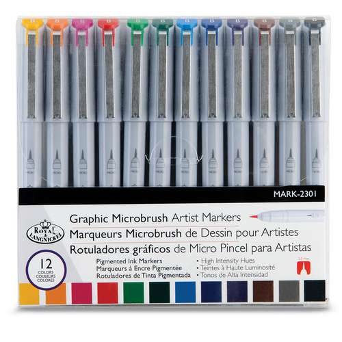 Ce set de 12 feutres Microbrush Royal Langnickel est parfait pour les détails, le dessin technique grâce à sa pointe de pinceau fine.