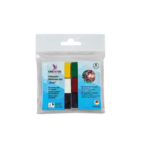 Le Set pour encaustique Creartec se compose de blocs de cire pigmentée à haute intensité, qui se liquéfient au chauffage et conviennent à la fois aux grands aplats et aux détails fins. Grâce à leur consistance stable, ces blocs permettent des couches de couleur nettes, intenses et faciles à contrôler, idéales pour la technique traditionnelle de l’encaustique ou pour des expérimentations créatives.
