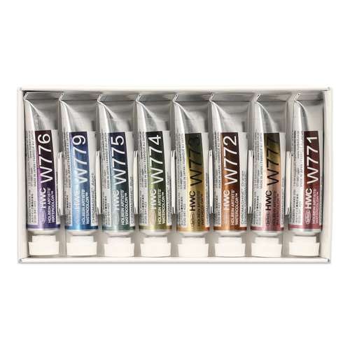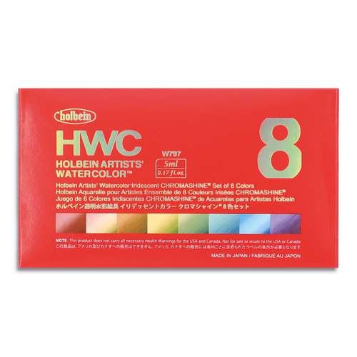 Set peinture aquarelle Holbein 8 tubes 5 ml. Couleurs métalliques changeant selon l’angle, pigments polarisés, effets scintillants et opaques Plus
