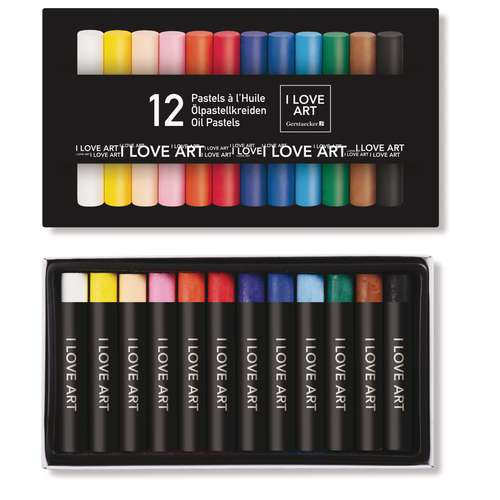 Set de 12 pastels à l'huile I LOVE ART - les couleurs contenues