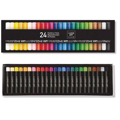 Set de 24 pastels à l'huile I LOVE ART - les couleurs contenues en plus du set de 12