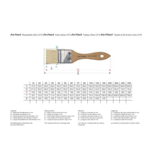 Le Spalter DA VINCI série 2475 est un pinceau large en soies blanches de Chine pour peindre les surfaces moyennement grandes et grandes.