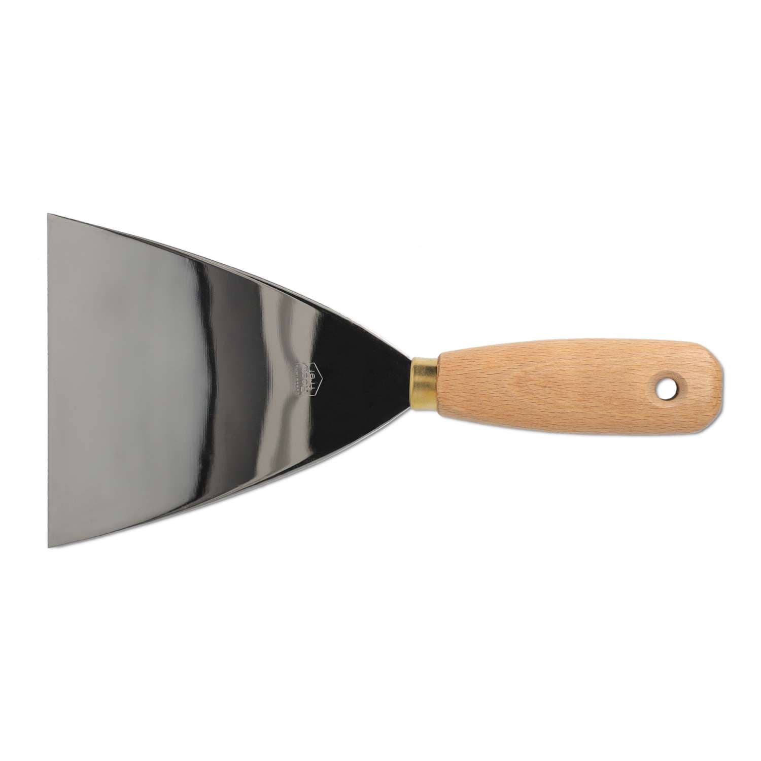 La spatule acier inoxydable Waldron est un outil professionnel polyvalent pour les travaux de spatulation, lissage et application de peinture ou d’encre. Sa lame en acier inoxydable de haute qualité, finement polie et semi-flexible, permet un contrôle précis et un rendu uniforme. Le manche en bois robuste assure une prise en main confortable et dispose d’une pratique boucle de suspension pour un rangement facile.