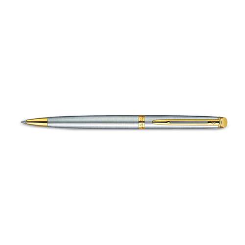 La remarquable allure du Stylo-Bille Hémisphère est mise en valeur par le clip à branche double emblématique classique de Waterman, ainsi que par une superbe finition plaquée or. Elle est présentée dans un étui cadeau Waterman haut de gamme. Pointe de stylo-bille remarquablement conçue avec une pointe moyenne et de l’encre bleue à séchage rapide.