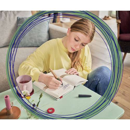 La zone de préhension ergonomique est conçue à 100 % en bioplastique issu de matières premières renouvelables, offrant un confort optimal pour l’écriture prolongée. Le capuchon intègre un plastique partiellement remplacé par des fibres naturelles, notamment des coques de graines de tournesol, réduisant l’empreinte écologique du stylo.
