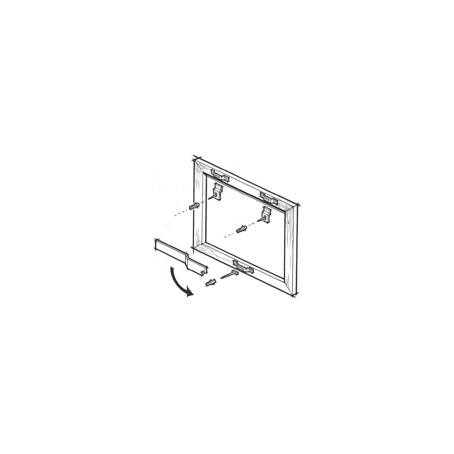 Système d'attache antivol pour fixer un cadre à une paroi et “verrouiller” l’oeuvre avec une clé de sécurité. L’oeuvre ne pourra être retirée sans la clé.
