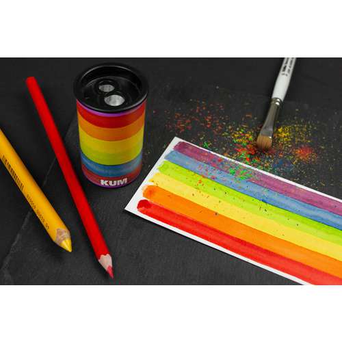 Le taille-crayon double KUM® RAINBOW apporte de la couleur arc-en-ciel sur chaque table de travail !