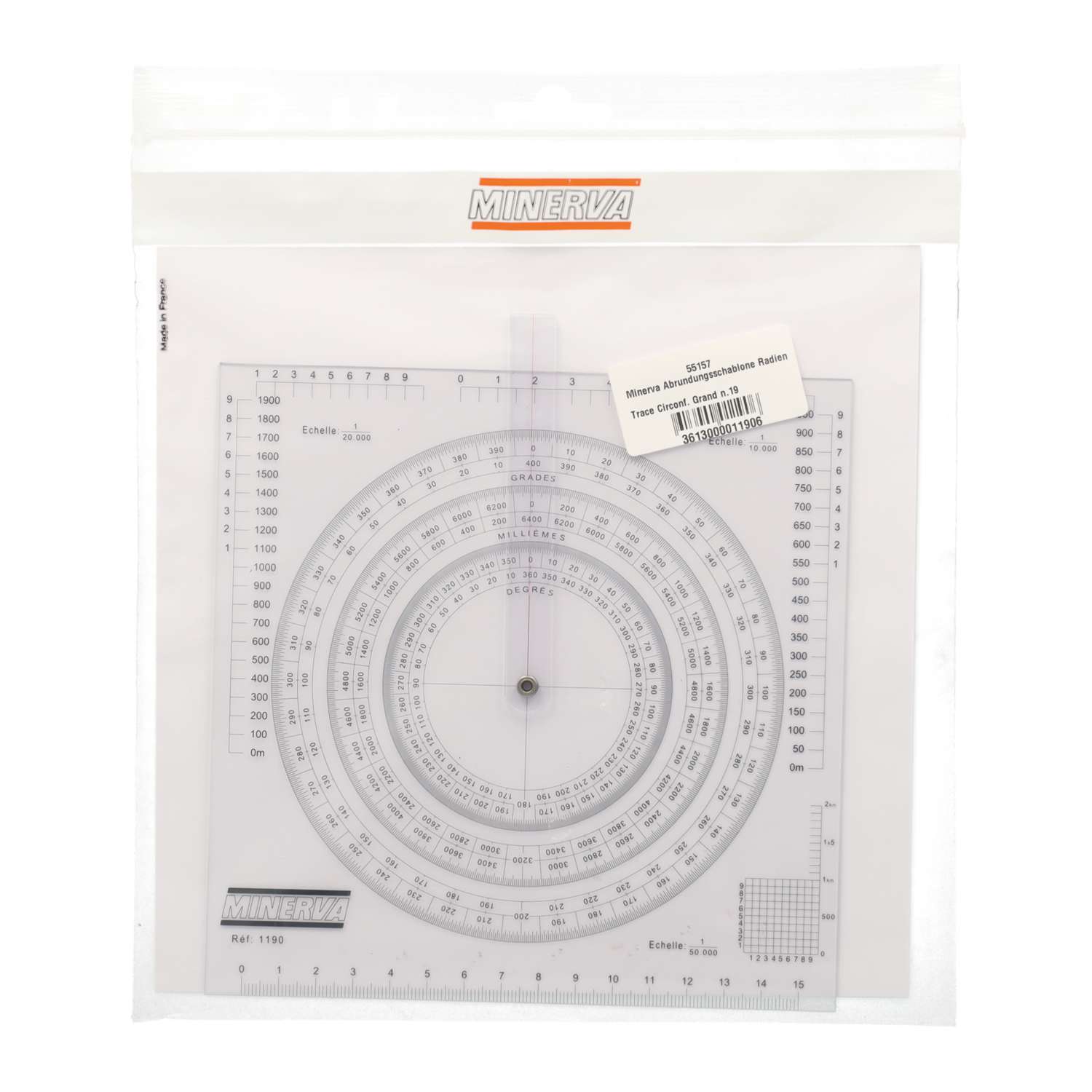 Le Trace circonférences Minerva N° 19 offre de nombreuses formes géométriques pour la réalisation de dessins techniques et de layouts.