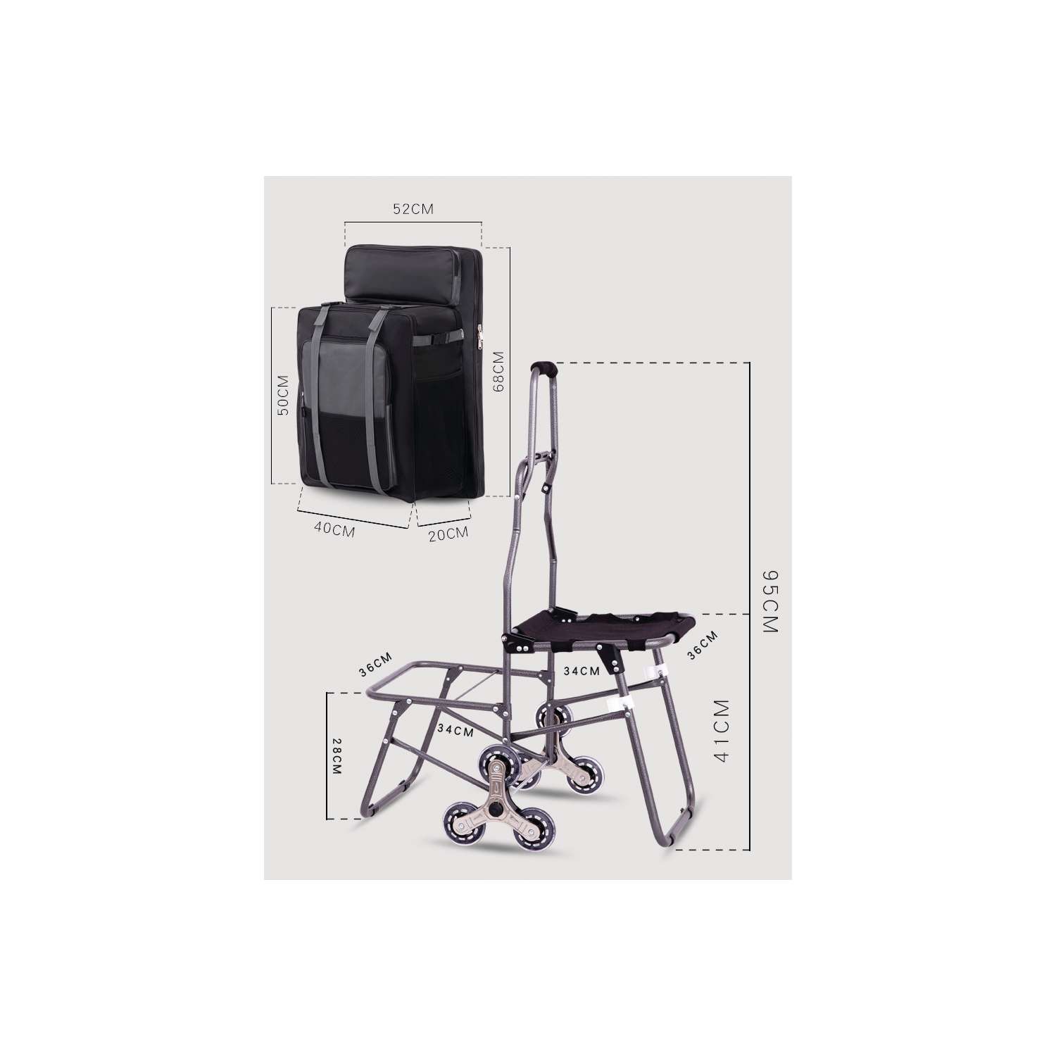 - 2 liens pour attacher un rouleau de transport et 1 petite : dimensions : env. 48 x 28 x 28 cm, compartiment sur le côté, ouverture supplémentaire avec fermeture