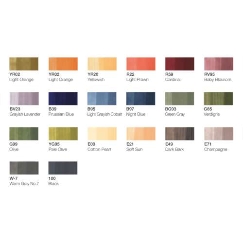 La trousse de 20 marqueurs Copic Ciao, contient une sélection de couleurs spécialement destinées à la réalisation de manga. Pochette noire.
