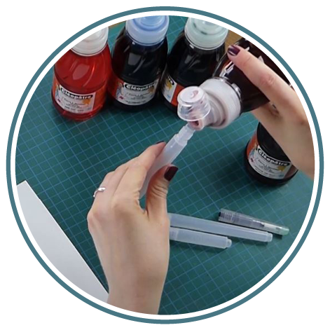 Mais on peut aussi remplir ce réservoir avec de la peinture prête à l'emploi. Par exemple avec l'encre à dessin de Cléopâtre. Créez de belles écritures et oeuvres grâce à cette technique de combinaison pratique !