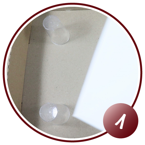 Placez une protection adaptée (par exemple un couvercle en carton) sur la table et placez-y 4 gobelets solides en plastique afin de permettre à la peinture de s’écouler. Posez ensuite la toile sur les gobelets.