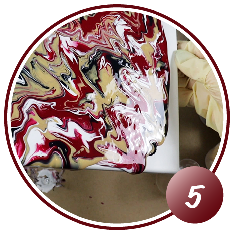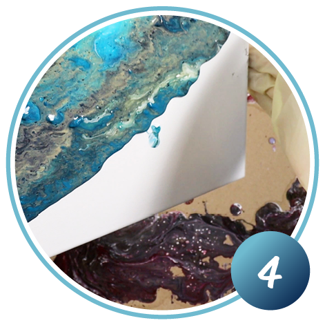 Soulevez maintenant la toile et faites-la pivoter soigneusement pour que la peinture puisse couler dans chaque coin et déborder sur les parties blanches.