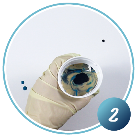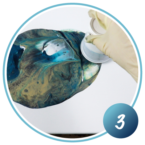 Versez maintenant la totalité de la peinture (couleurs séparées) sur la toile positionnée.