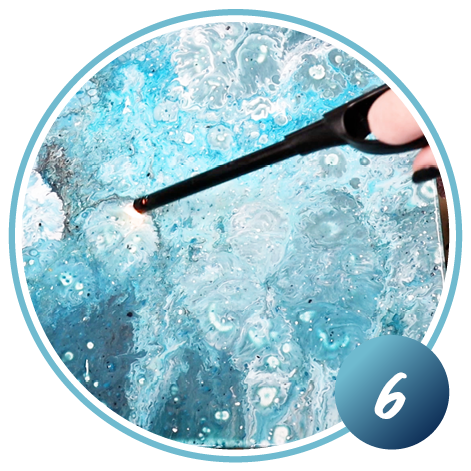 Pour que le silicone "éclate" davantage, vous pouvez passer avec de la chaleur (briquet ou bec bunsen) au-dessus de la surface.