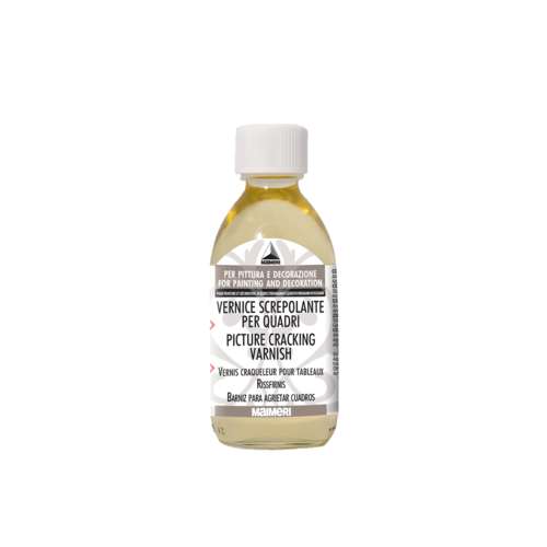 Le vernis à craquelé Maimeri est un vernis spécial pour la peinture à l’huile, conçu pour créer l’effet craquelé. Composé d’ingrédients naturels comme l’amidon et le dextrine en solution aqueuse, il s’utilise en combinaison avec le vernis patine pour tableaux. Après application, de fines fissures apparaissent en environ 30 minutes, leur taille et profondeur variant selon la température et l’humidité ambiante. Ce processus crée une surface à l’aspect antique et décoratif. Les fissures peuvent ensuite être accentuées avec du bitume ou des pigments et protégées par une nouvelle couche de vernis patine. Idéal pour les artistes souhaitant donner à leurs œuvres un aspect historique et patiné.