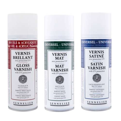 Vernis anti-UV universel, pour huile et acrylique, avec protection UV. Aérosol de 400 ml.