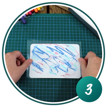 Wie bei Variante 1 und 2 wird mit den Aquarellstiften auf das Stück Plastikfolie gemalt.