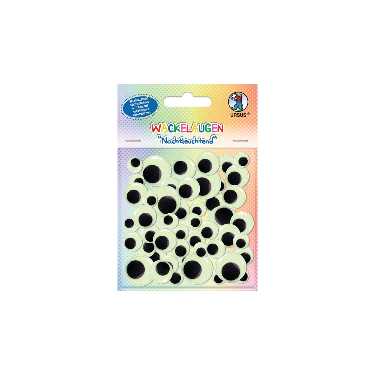 Les yeux mobiles URSUS sont des accessoires parfaits pour vos travaux de bricolage. Le set URSUS contient 52 yeux mobiles de tailles différentes luminescents dans l´obscurité. Donnez à chaque projet un caractère amusant et unique.